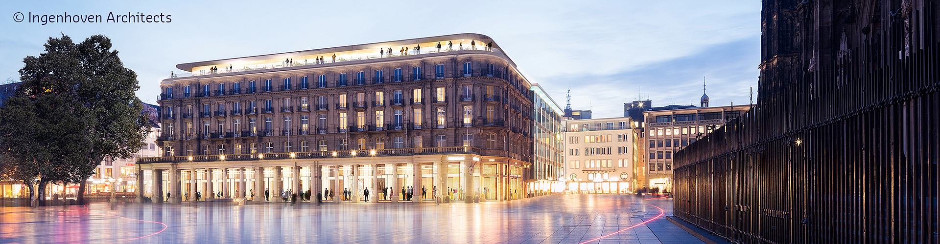 Das Dom Carré wird dank einer umfassenden Komplettsanierung zukünftig zum exklusiven Highlight auf der Domplatte in der Kölner Altstadt. Dafür wurden alle denkmalgeschützten Teile des alten Dom-Hotels erhalten und mit den bei Erdarbeiten entdeckten römischen Mauerresten in die moderne Architektur des Carrés integriert. Die über 100 Jahre alte historische Fassade bekommt als modernes Gegenstück ein Staffelgeschoss mit einem Metall-Flachdach, in das eine Gastronomie mit bestem Blick auf den Kölner Dom einziehen wird.